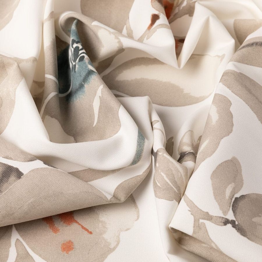 Soepel vallende bedrukte gordijnstof met een kleurig aquarel bloemdessin aan de voorzijde. De print is aan de achterzijde licht zichtbaar. Deze stof is Oeko-Tex gecertificeerd.