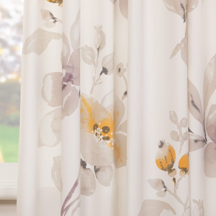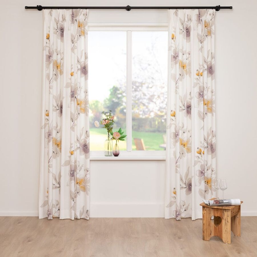 Soepel vallende bedrukte gordijnstof met een kleurig aquarel bloemdessin aan de voorzijde. De print is aan de achterzijde licht zichtbaar. Deze stof is Oeko-Tex gecertificeerd.