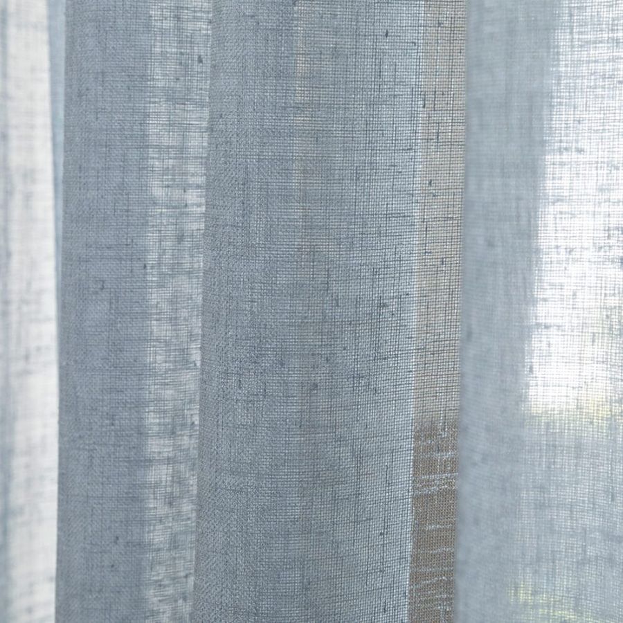 Open geweven vitrage met een natuurlijk ogende linnenlook. De stof is kamerhoog zodat in de confectie geen naden zichtbaar zullen zijn. Aan de onderzijde van de stof is een verzwaringskoord gemaakt, zodat deze prachtig valt en er geen zoom in hoeft.