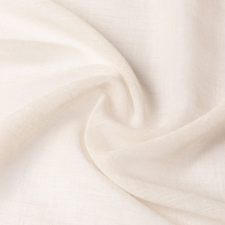 Open geweven vitrage met een natuurlijk ogende linnenlook. De stof is kamerhoog zodat in de confectie geen naden zichtbaar zullen zijn. Aan de onderzijde van de stof is een verzwaringskoord gemaakt, zodat deze prachtig valt en er geen zoom in hoeft.