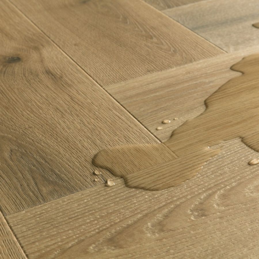 Zoekt u een vloer voor het echte leven? Visgraatlaminaat van Quick-Step past in elke kamer – u kunt zelfs laminaat leggen in uw keuken en veel belopen ruimtes. Al meer dan 10 jaar lang biedt Quick Step het enige 100% waterbestendige laminaat aan, en al die tijd hebben we nog geen enkele klacht ontvangen. Dat zegt genoeg, toch?