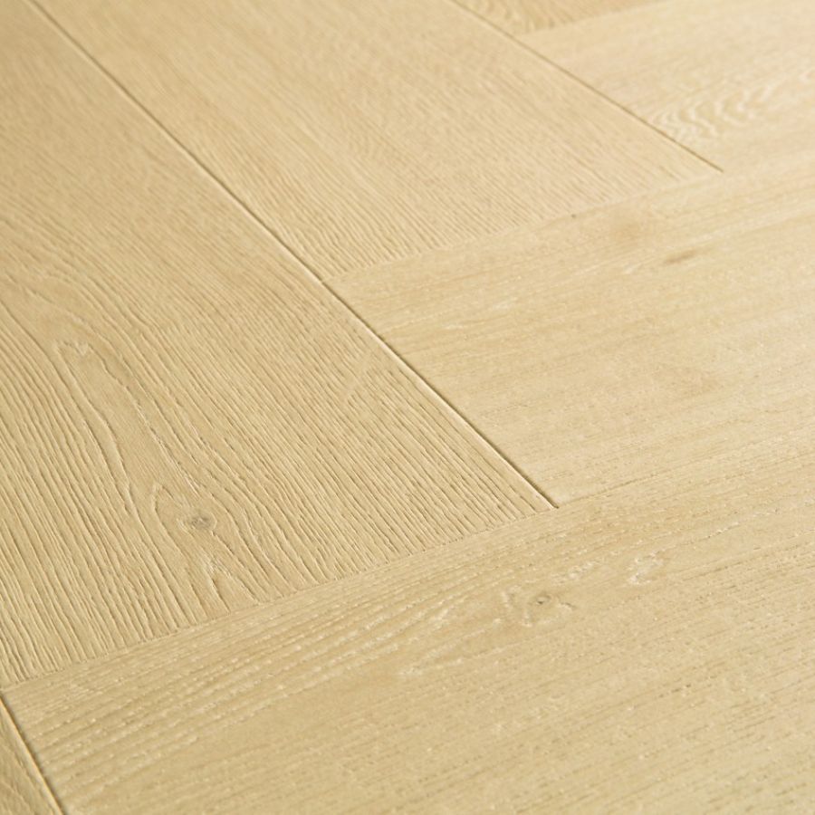 Quick-Step heeft de juiste vloer voor elk interieur. Quick-Step Impressive Design is een collectie laminaatvloeren in visgraat motief met een buitengewoon natuurlijke aanblik en gevoel. De authentieke houtnerven van de planken worden bijvoorbeeld perfect weerspiegeld in de voegen van de vloer. En dat is niet alles: dankzij een unieke waterafstotende 'HydroSeal' coating ogen de Impressive laminaatvloeren niet alleen prachtig, maar zijn ze ook het best tegen water bestand van alle laminaatvloeren die ooit zijn gemaakt.