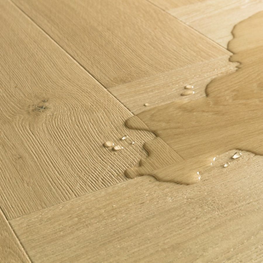 Zoekt u een vloer voor het echte leven? Visgraatlaminaat van Quick-Step past in elke kamer – u kunt zelfs laminaat leggen in uw keuken en veel belopen ruimtes. Al meer dan 10 jaar lang biedt Quick Step het enige 100% waterbestendige laminaat aan, en al die tijd hebben we nog geen enkele klacht ontvangen. Dat zegt genoeg, toch?