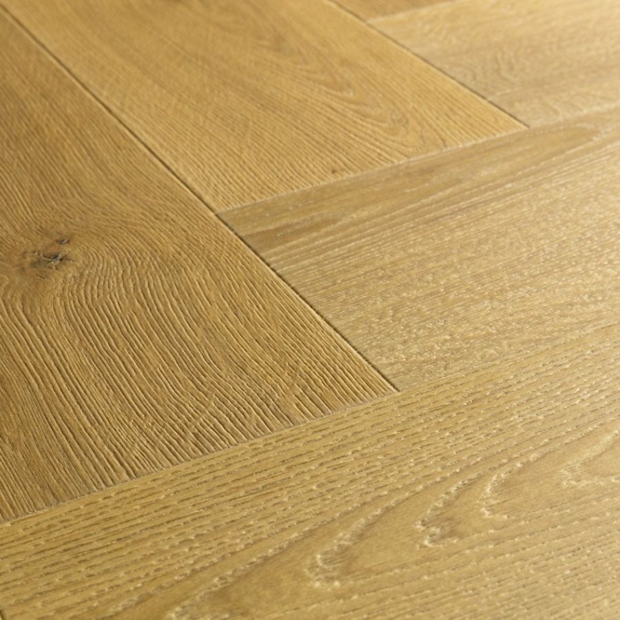 Zoekt u een vloer voor het echte leven? Visgraatlaminaat van Quick-Step past in elke kamer – u kunt zelfs laminaat leggen in uw keuken en veel belopen ruimtes. Al meer dan 10 jaar lang biedt Quick Step het enige 100% waterbestendige laminaat aan, en al die tijd hebben we nog geen enkele klacht ontvangen. Dat zegt genoeg, toch?
