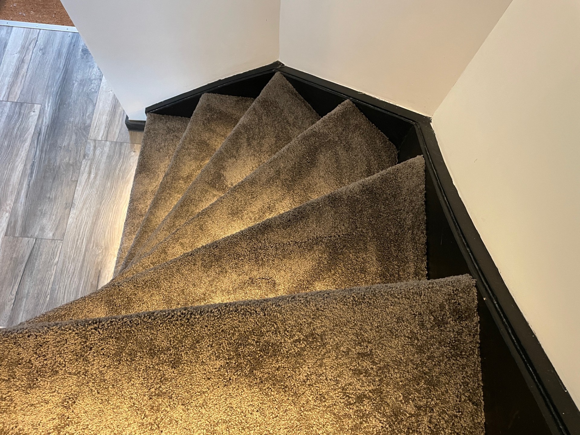 Trap bekleden met tapijt aanbieding vanaf 545,- inclusief lijm. Zoekt u een zacht tapijt aanbieding om uw trap te bekleden? Dit tapijt is geschikt voor trappen voor normaal woongebruik. Een goede kwaliteit vloerbedekking leverbaar in antraciet en zand kleur met een mooie uitstraling. Binnen een paar uur ziet uw trap er weer uit als nieuw !